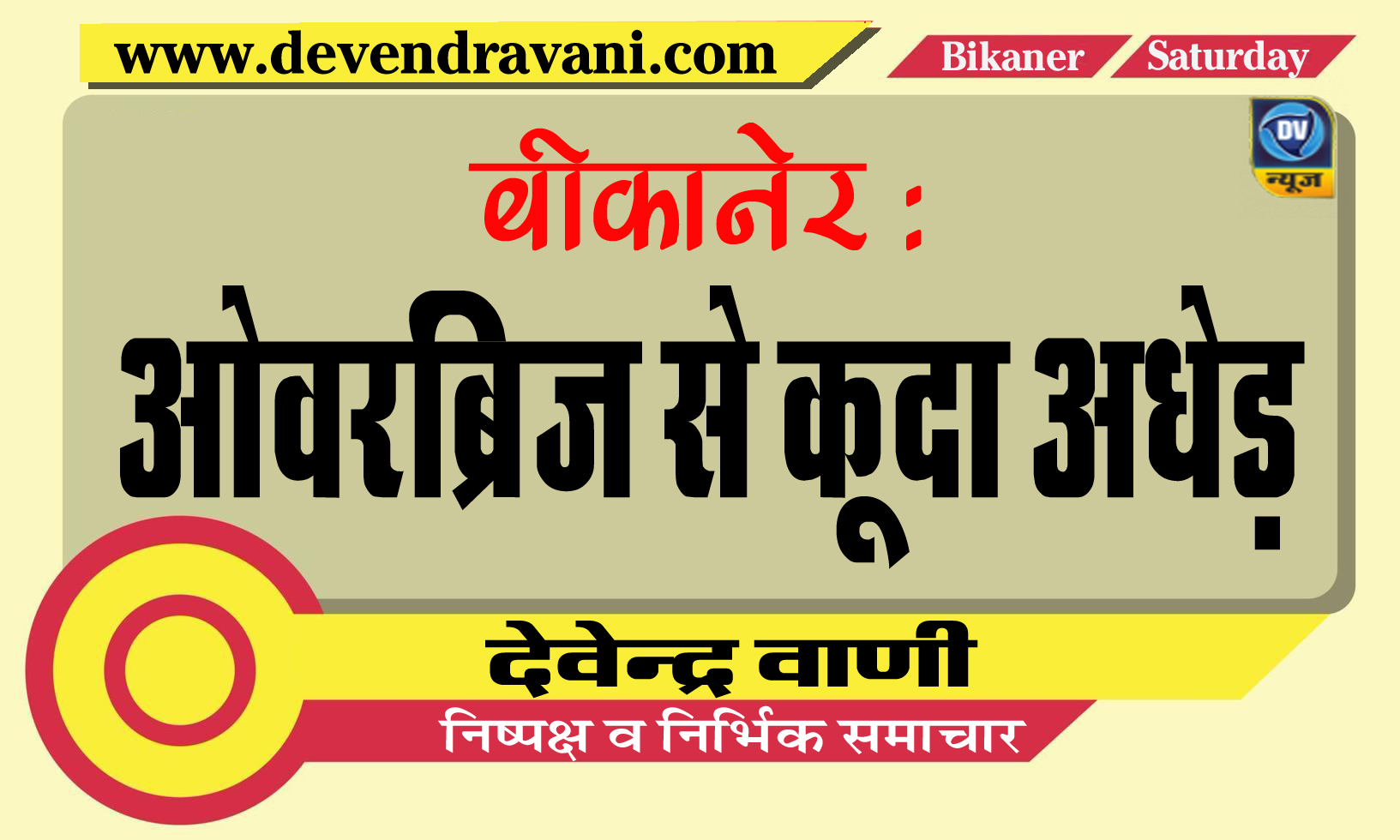 देवेन्द्र वाणी न्यूज़, बीकानेर। एक अधेड़ रानी बाजार क्षेत्र के ओवर ब्रिज से कूद गया, जिसे गंभीर घायल अवस्था में पीबीएम के ट्रॉमा सेंटर में भर्ती करवाया गया है। घटना के बाद अधेड़ को राहगीरों ने पीबीएम पहुंचाया व कोटगेट पुलिस को सूचना दी। रानी बाजार ओवरब्रिज से कूदने वाले व्यक्ति की पहचान अलवर के बानसुर निवासी सुगन कुम्हार के रूप में हुई। पुलिस अधेड़ से पूछताछ कर रही है तथा उसका उपचार किया जा रहा है।