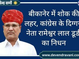 बीकानेर में शोक की लहर, कांग्रेस के दिग्गज नेता रामेश्वर लाल डूडी का निधन